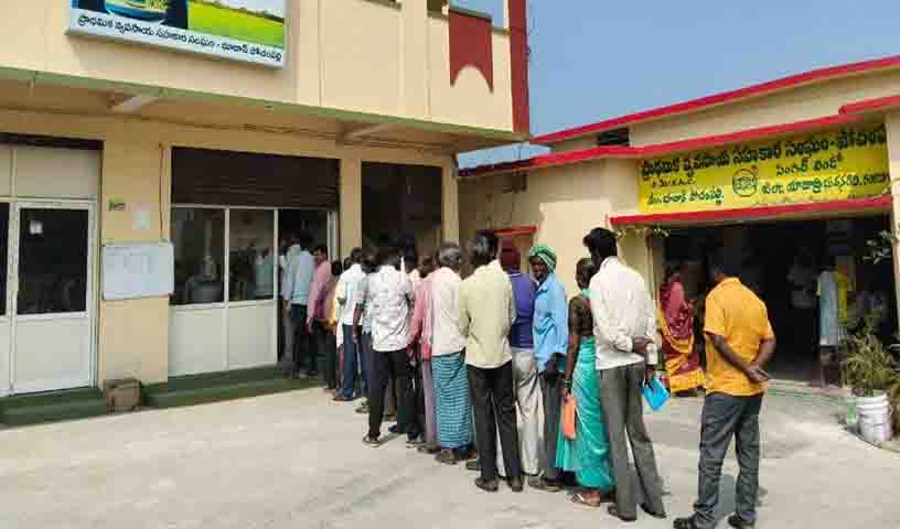 Farmers queued up for urea at the PACS in Bhoodan Pochampally mandal center on Wednesday. Many farmers reached there after learning that urea was being provided. Those who had booked on the app queued up for urea. Some others expressed their anger at not receiving urea for the farmers and left. On Wednesday, 444 bags arrived and urea was distributed to the farmers who had booked on the app.