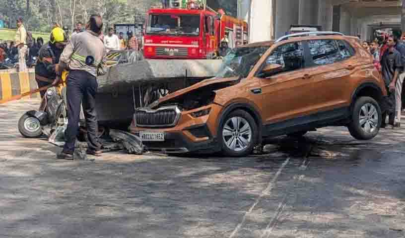 An auto-rickshaw travelling on the collapsed Metro Pillar Road fell on a car. One person in the vehicle died and four others were injured. The vehicles were destroyed. Firefighters and police reached the spot after receiving information about the incident. The injured were rushed to a nearby hospital. Relief efforts are underway. Mumbai Metropolitan Region Development Authority (MMRDA) officials, BMC officials and Metro officials have reached the spot and are reviewing the situation. Officials have announced that full medical assistance will be provided to the injured.