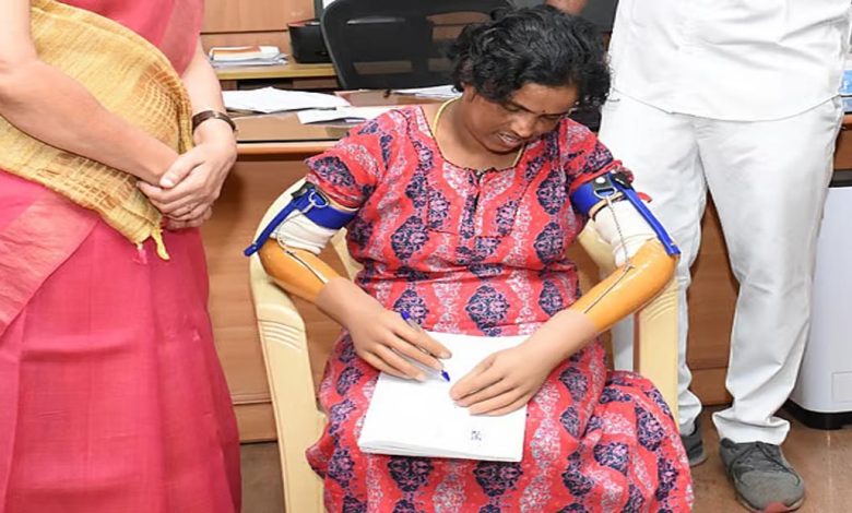 COIMBATORE: A 32-year-old woman from Kotagiri in Nilgiris district, who had lost both her arms due to electrocution was treated…
